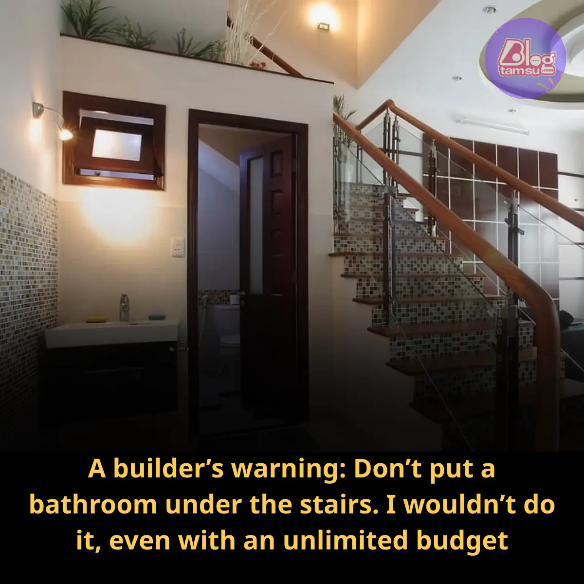 At first glance, a bathroom tucked under the stairs seems like a smart use of space. Many homeowners see the empty triangle beneath a staircase and think: perfect spot for a compact powder room. The idea sounds efficient, modern, and practical—especially in small homes where every square meter matters. However, experienced builders often raise a red flag. As the caption in the image warns: “Don’t put a bathroom under the stairs. I wouldn’t do it, even with an unlimited budget.” That’s a strong statement—and it’s worth exploring why.