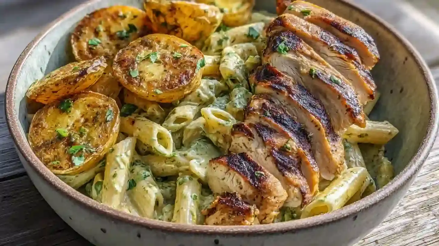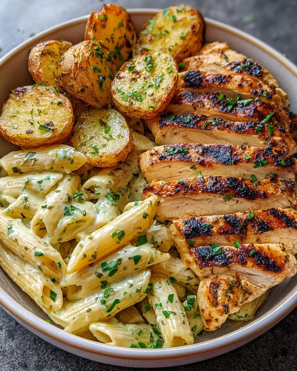 Herb-Roasted Chicken with Garlic Potatoes & Green Beans