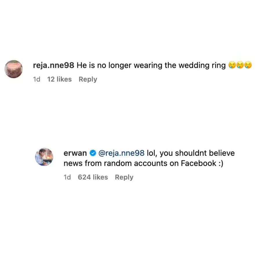 “He is no longer wearing the wedding ring,” the netizen commented, adding crying face emoji.