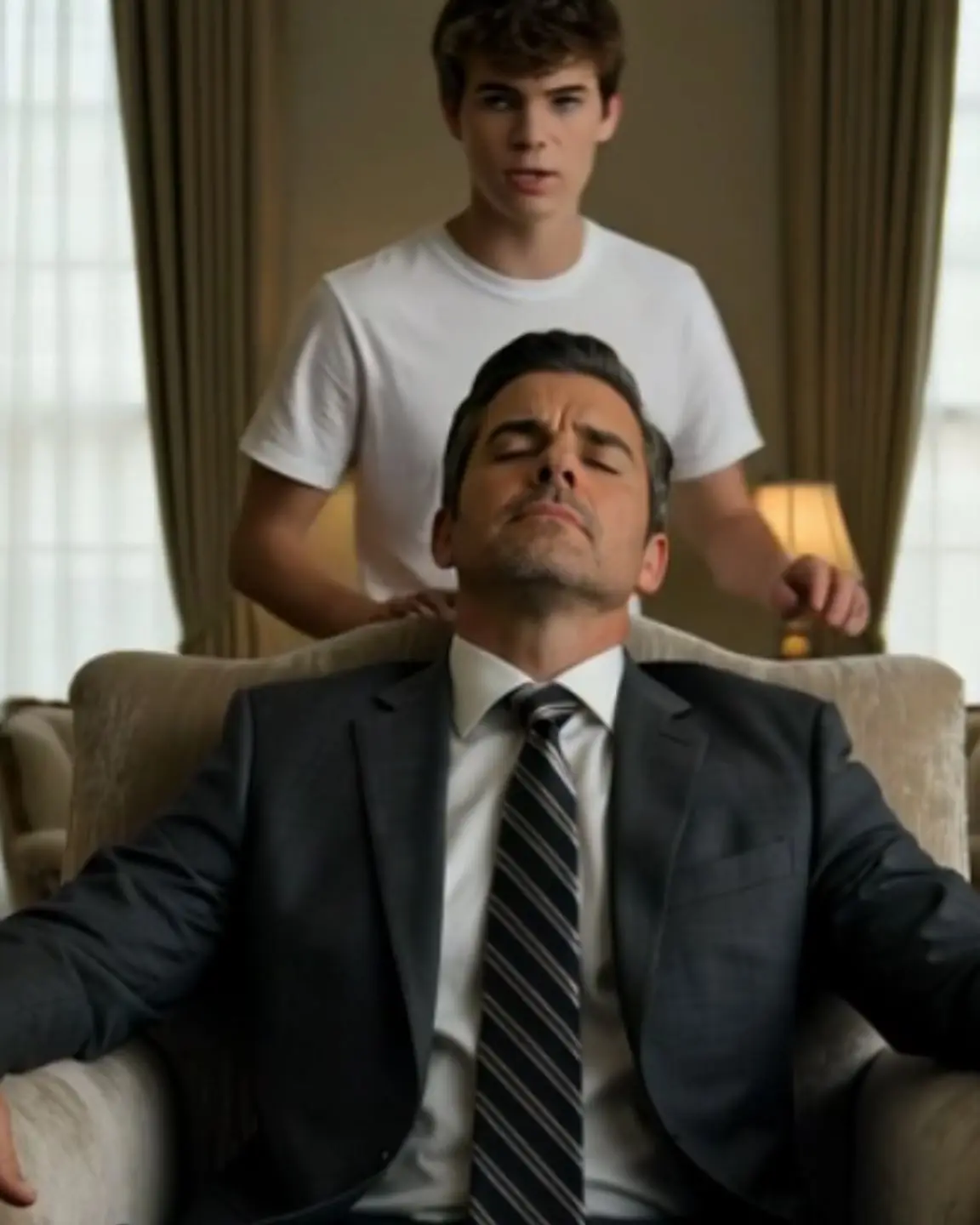 His eyes were closed, his breathing slow and even, his thin body settled deep into the burgundy velvet of his favorite wingback chair. To anyone glancing in, he looked like a fragile old man lost in an afternoon nap while rain tapped steadily against the tall windows.