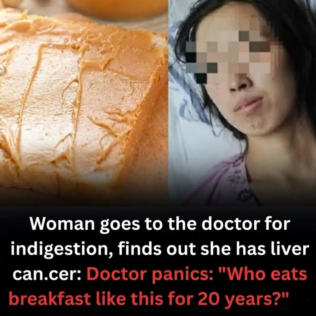 The image circulating online pairs her story with a familiar breakfast—toast spread with a thick, sweet or oily topping—and a dramatic question: “Who eats breakfast like this for 20 years?” While the headline is attention-grabbing, the real message is worth discussing carefully: long-term daily habits can shape health over time, and liver problems can develop quietly for years before being discovered.