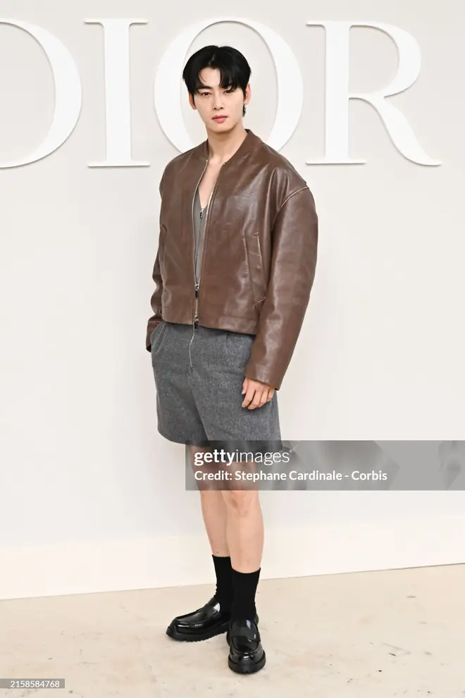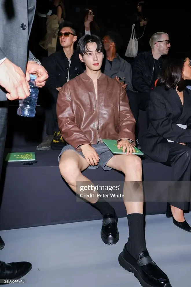 Appearing in a more unique look than usual, with a leather jacket and shorts paired with high black socks, Cha Eun Woo still impressed with his visuals. The outfit itself had no flaws, but fans seemed disappointed as the idol dressed a bit conservatively for a Menswear show.