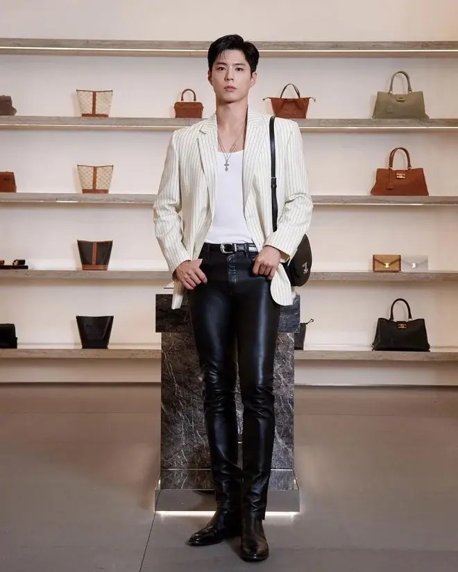 When Park Bo Gum returned to wearing fitted skinny pants, he regained his handsome and masculine appearance. The slim legs of this handsome man are truly meant for skinny pants rather than the daring choices CELINE made.