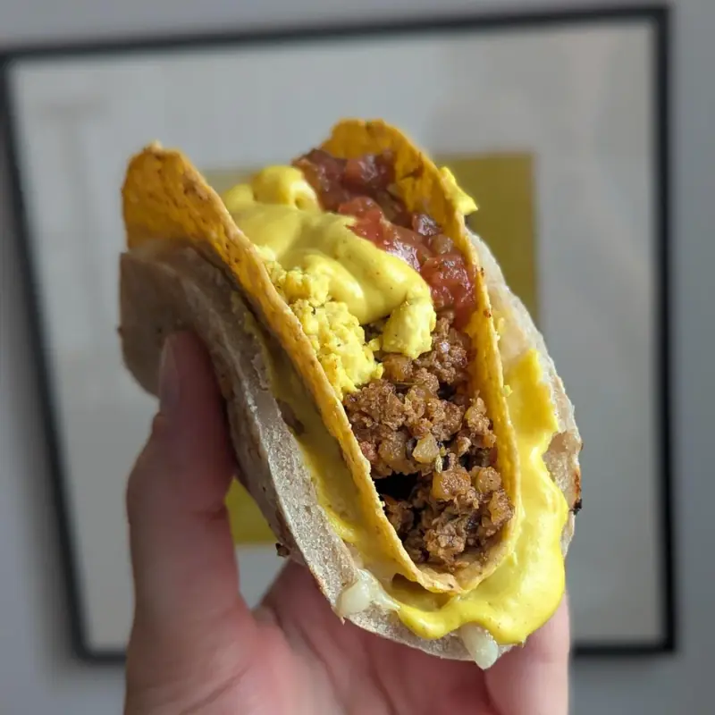 At first glance, it looks like a taco. But one bite reveals all the unmistakable elements of a cheeseburger: juicy ground beef, melted cheese, crispy bacon, and rich savory seasoning, all tucked neatly inside a soft taco shell.