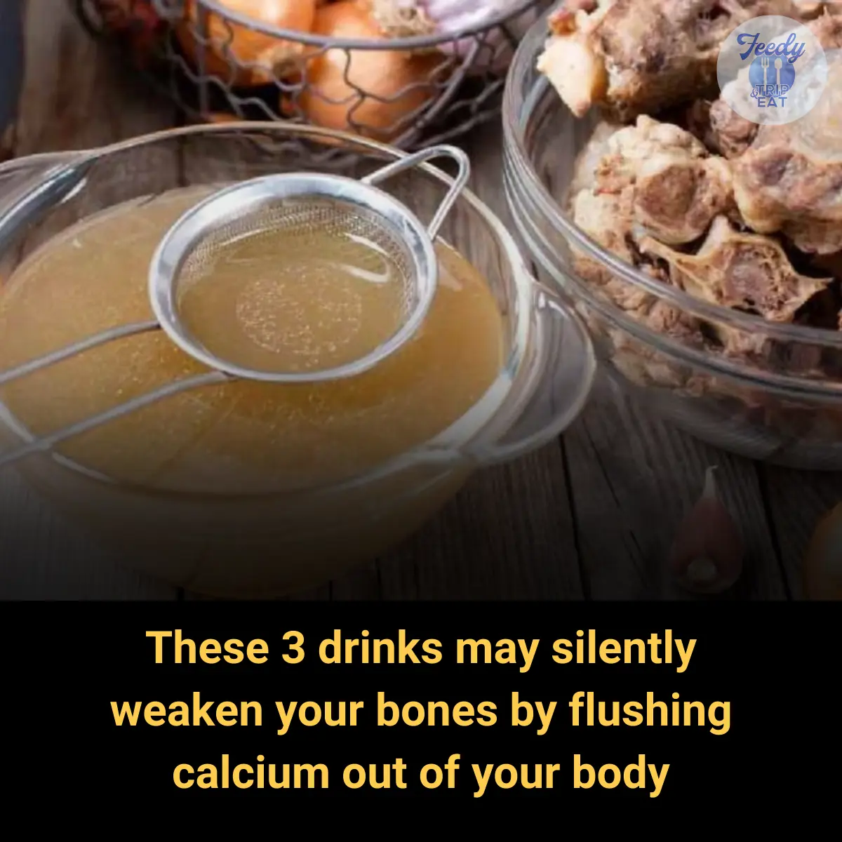 When people think about bone health, they usually focus on calcium-rich foods like milk, yogurt, or leafy greens. But what many don’t realize is that certain drinks may quietly work against your bones over time. The bold message in the image warns: “These 3 drinks may silently weaken your bones by flushing calcium out of your body.”