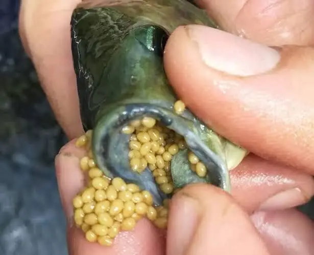 At first glance, the images appear unsettling. The fish seem to have their mouths filled with small yellow spheres, leading some viewers to assume the presence of parasites, toxins, or even contamination. However, experts say the reality is far less alarming than it appears.